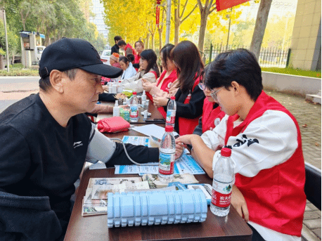 活动现场气氛温馨,服务内容丰富多样。志愿者们不仅为前来参与的老人们提供了专业的血压、血糖测量服务,还耐心讲解日常保健知识,传递健康生活理念。在康复器材体验区,同学们细致演示并指导老人体验部分便携式康复治疗设备,让老人们在互动中了解科学康复的重要性,近距离感受康复医学的魅力。此外,师生志愿者还组成服务小队,开展“一对一”入户康复服务,深入老人家中,结合其具体需求,提供针对性的康复指导与健康咨询,不仅缓解了老人们身体上的不适,更送上了温暖的陪伴与关怀。
