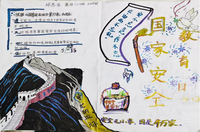 本网讯(文/李波波 图/ 姜舒婷)在第11个全民国家安全教育日来临之际,为深入贯彻总体国家安全观,强化学生国家安全意识,厚植爱党爱国情怀,河南中医药大学康复医学院学生会纪检生活部特举办“笔墨绘担当 青春筑国安”手抄报征集活动,面向全院在校学生征集原创手抄报作品,以笔墨为媒,凝聚青春护国安的责任与力量。
