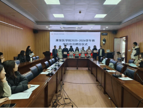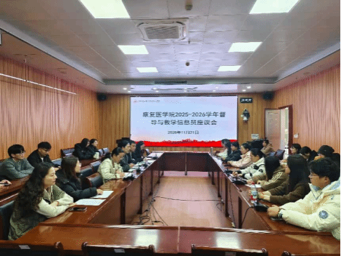 本网讯(图文/王娟)为了持续推进我院教学的高质量发展,进一步加强教学质量监控,推动教学信息反馈工作的有效开展,2025年11月21日上午8点40分,康复医学院在教学楼八楼BM801召开了院部督导与信息员座谈会。会议由教学办王欣雨老师主持,副院长刘斌、教学督导周云洁、程凯老师,教学办及教研室主任,以及全体学生教学信息员参加了本次会议。