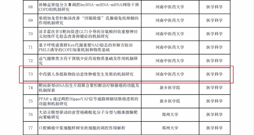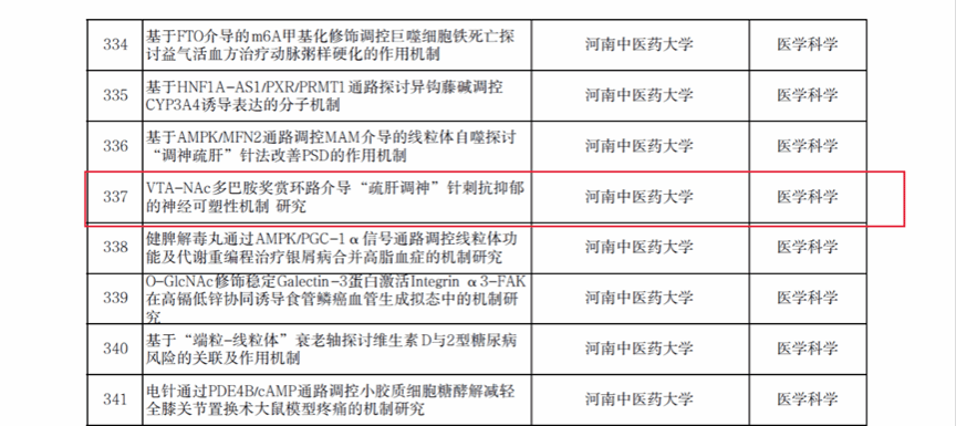 本网讯(文/王孟雨 图/王孟雨)根据《河南省自然科学基金项目管理办法》(豫科〔2022〕119号)有关要求,经过学校推荐、专家评审、公示等环节,河南省自然科学基金委研究确定了2026年度省自然科学基金立项资助项目,我院中医康复教研室张聪聪老师撰写的青B项目“中药猫人参提取物防治恶性肿瘤发生发展的机制研究”康复物理治疗教研室武莉华老师撰写的青C项目“VTA-NAc多巴胺奖赏环路介导“疏肝调神”针刺抗抑郁的神经可塑性机制研究”以及获得资助立项。