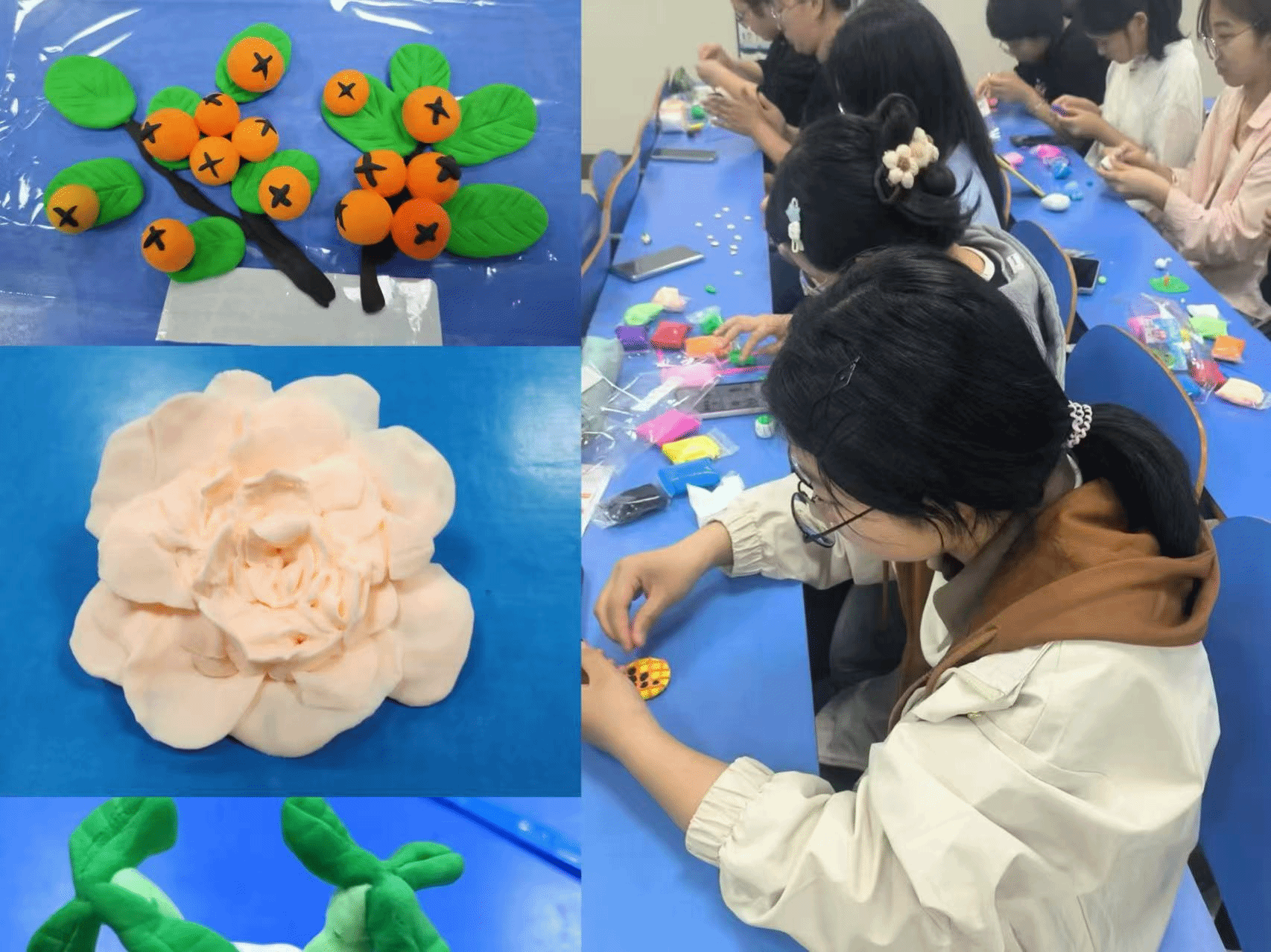 在核心的手作创作环节,同学们手持色彩丰富的粘土,发挥想象力与创造力,将对中药的理解与五行理念融入作品之中。其中,2024 级中西医专业张诗涵同学制作的“琵琶”造型中药(谐音“枇杷”,枇杷叶为金属性中药,可清肺润燥),以精巧的构思和细腻的手法赢得全场一致好评。创作过程中,同学们相互交流中药知识、探讨五行对应关系,在动手实践中释放压力,在思想碰撞中增进情谊。分享环节里,大家纷纷展示作品,畅谈创作思路与心理感受,都觉得心情舒畅了不少。